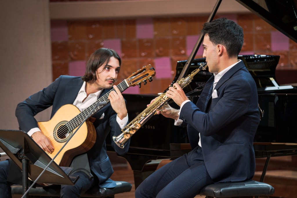 “Au bord des mots” Luis González (saxophone) et Antoine Guerrero (guitare), nous partagent leur passion pour la mélodie française et espagnole. Gabriel Fauré, Enrique Granados, ou encore Manuel de Falla. Un moment de musique de chambre aussi intime que chaleureux, au travers d’un répertoire extraordinaire pour le saxophone, mais également pour le guitariste qui est en même temps un accompagnateur, un soliste, un orchestre, qui enrobe le saxophone, que lui-même essaye d’imiter la voix humaine.